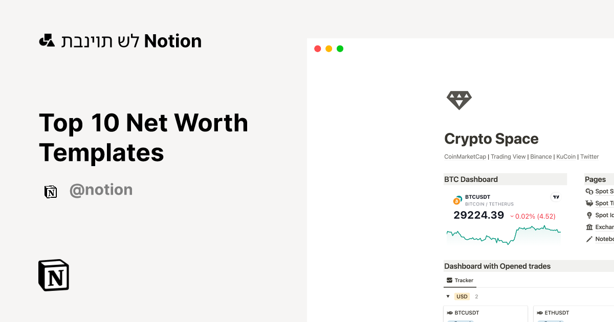 Top 10 Net Worth Templates Marketplace תבניות של Notion