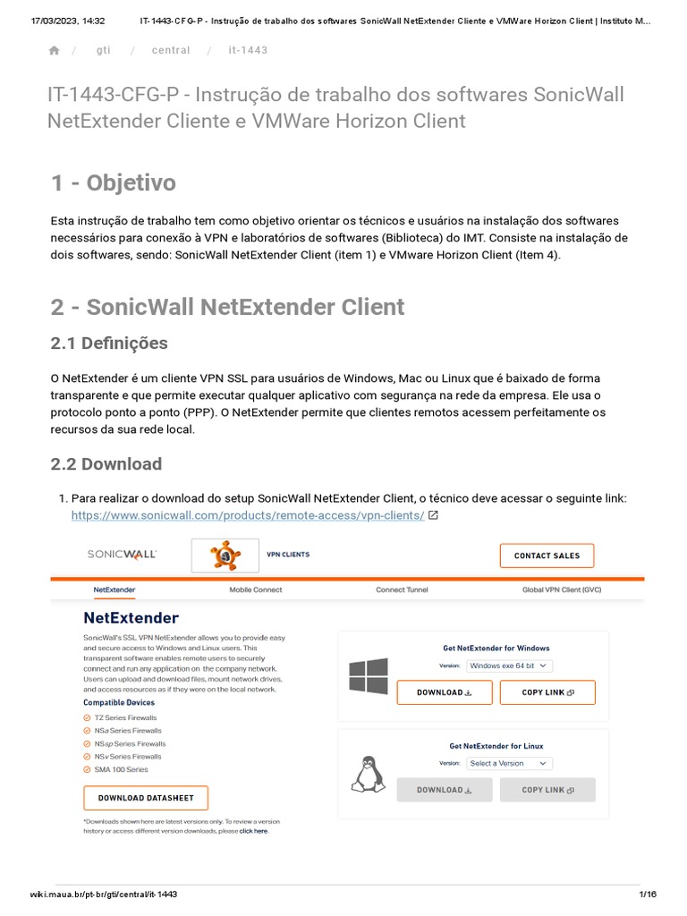 IT 1443 CFG P Instrução de Trabalho Dos Softwares SonicWall