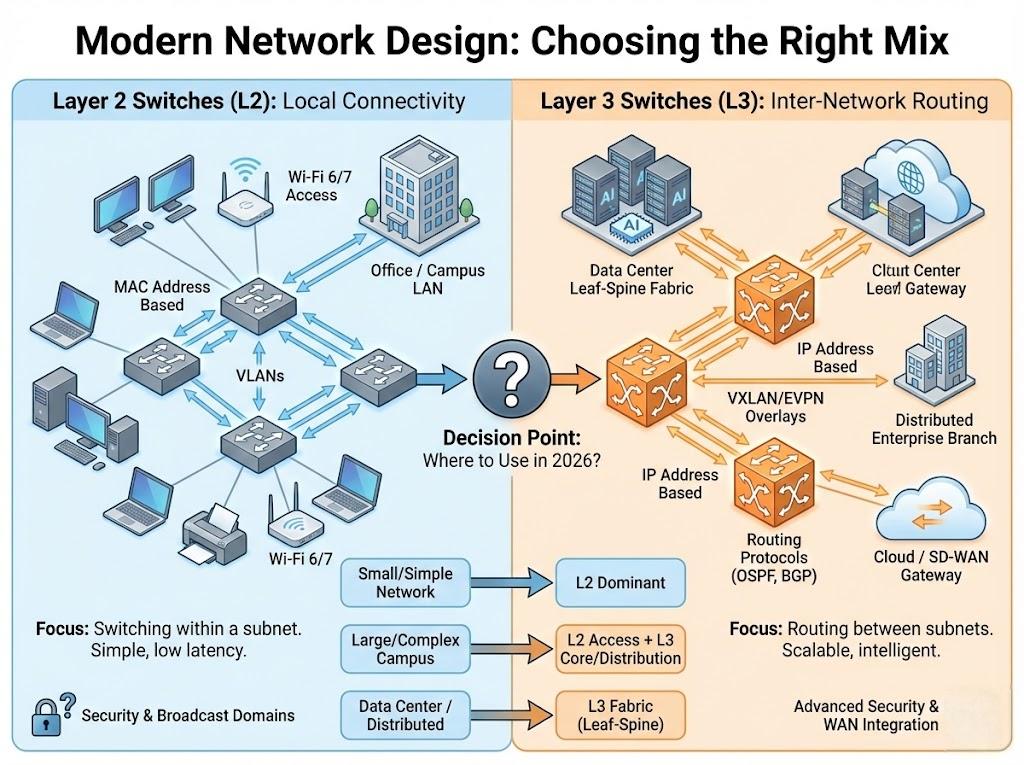 Layer 2 vs Layer 3 Switches in 2026: How to Design a Modern Network