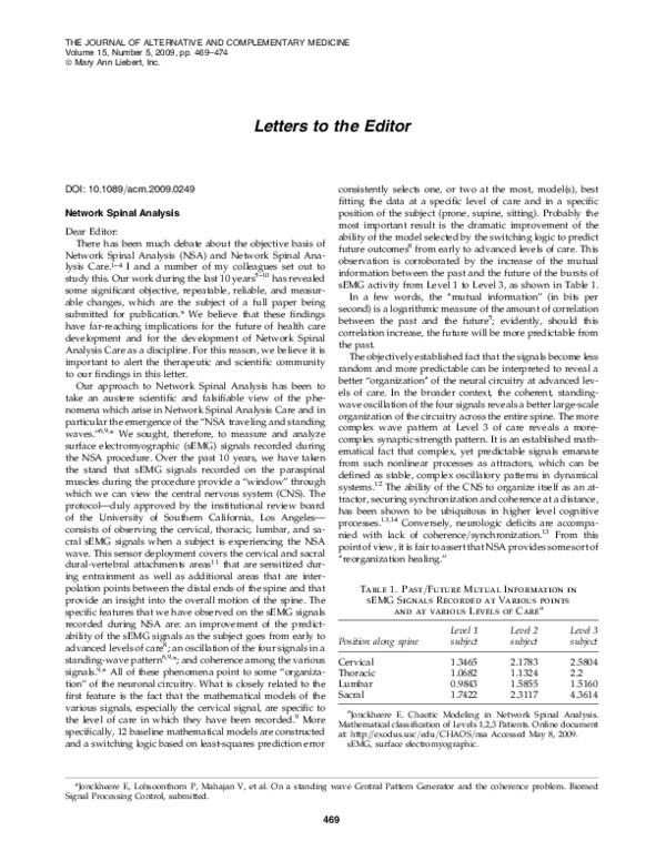 (PDF) A historical perspective on network spinal analysis care: A