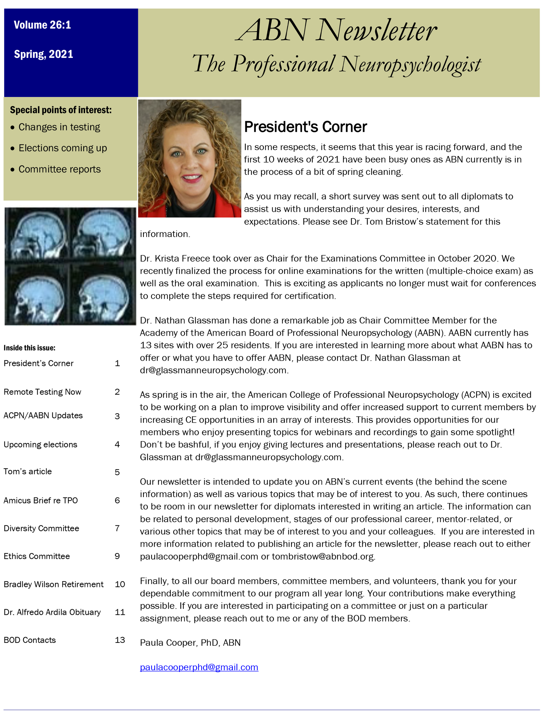 Board certification: American Board of Clinical Neuropsychology (ABCN