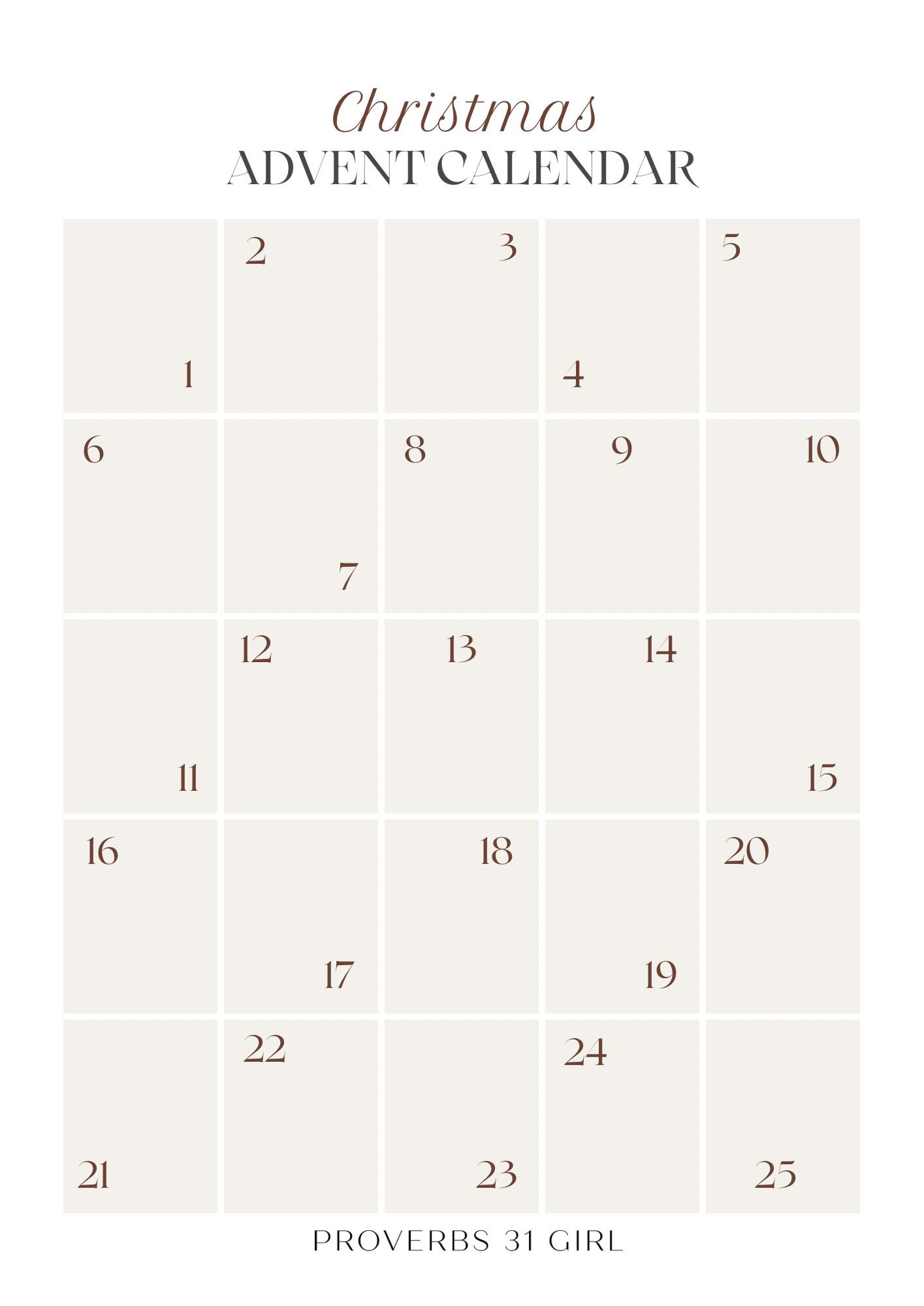 DIY Advent Calendar Printable Advent Calendar Neutral Advent Calendar