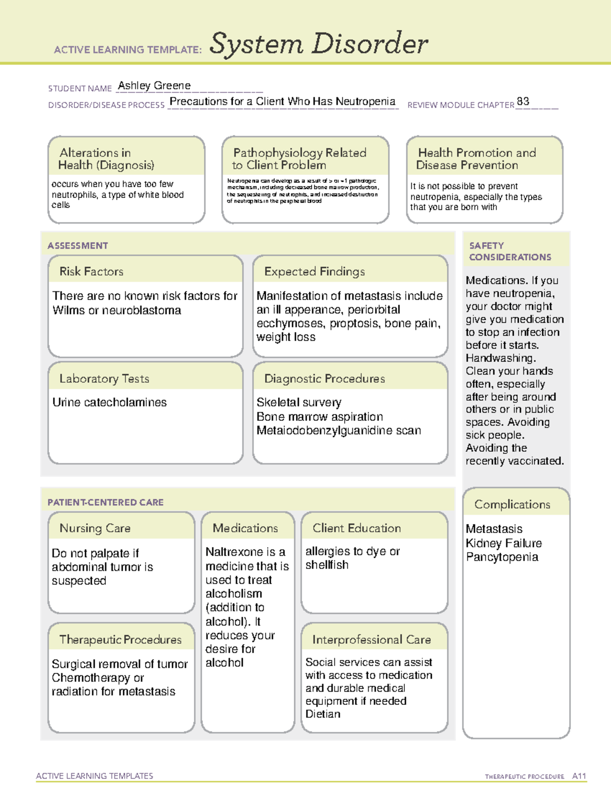 Neutropenia ATI ati templates ACTIVE LEARNING TEMPLATE: System