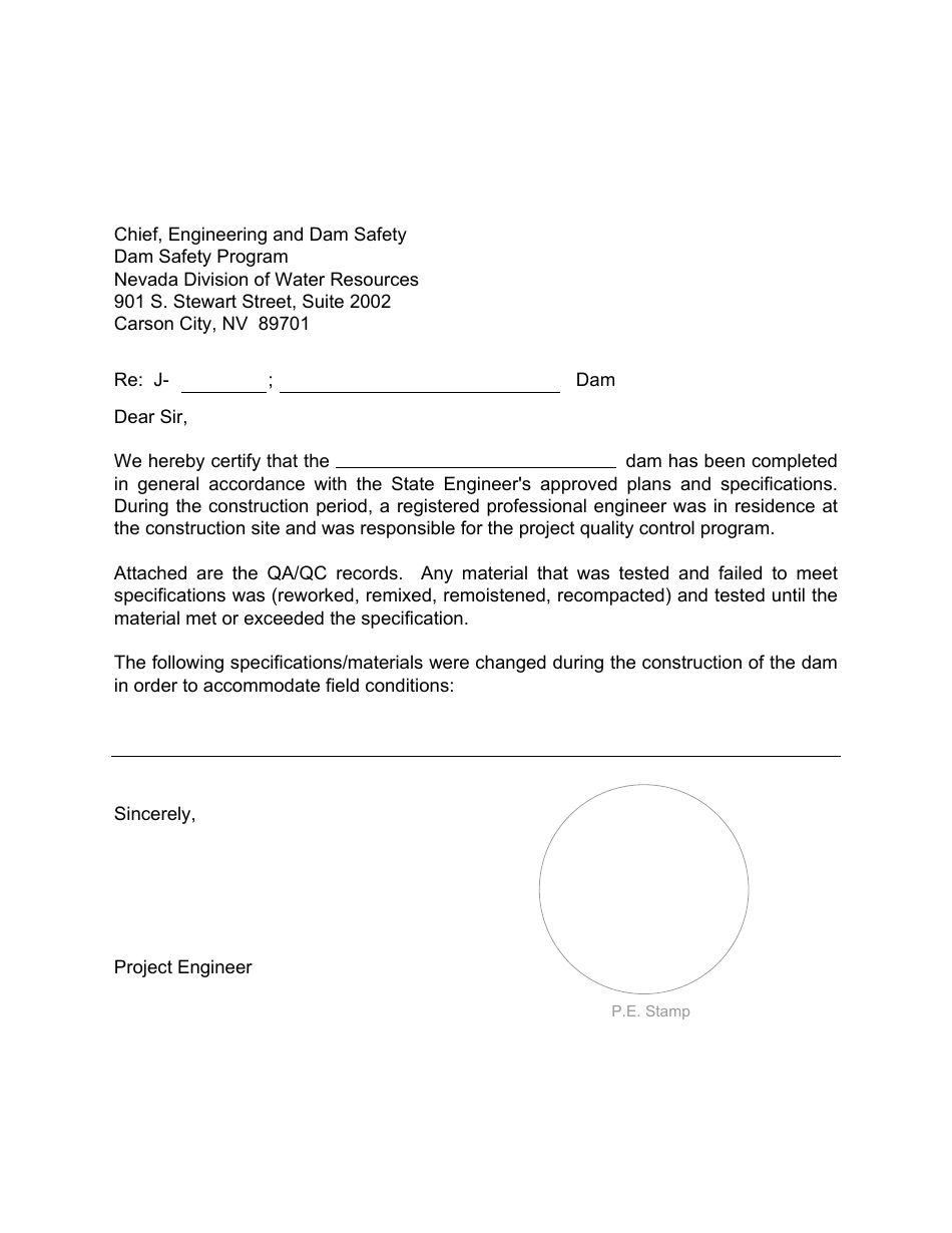Nevada Certificate of Dam Construction Fill Out Sign Online and