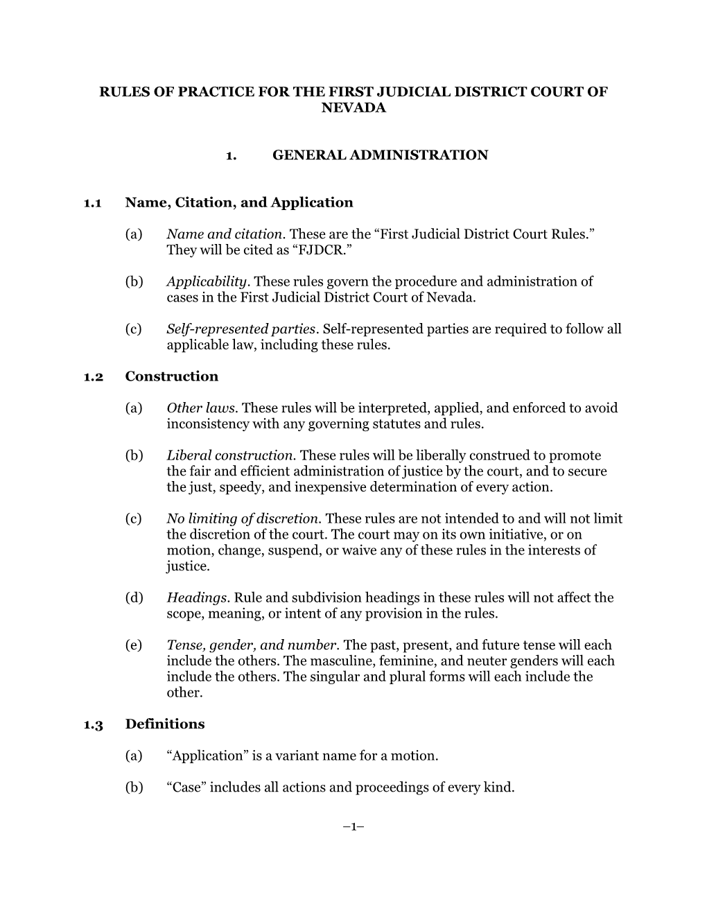 Rules of Practice for the First Judicial District Court of Nevada DocsLib