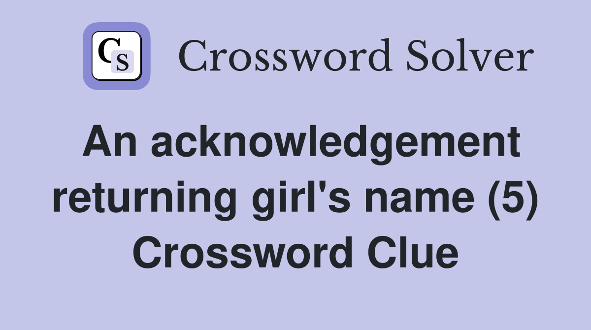 An acknowledgement returning girl #39 s name (5) Crossword Clue Answers