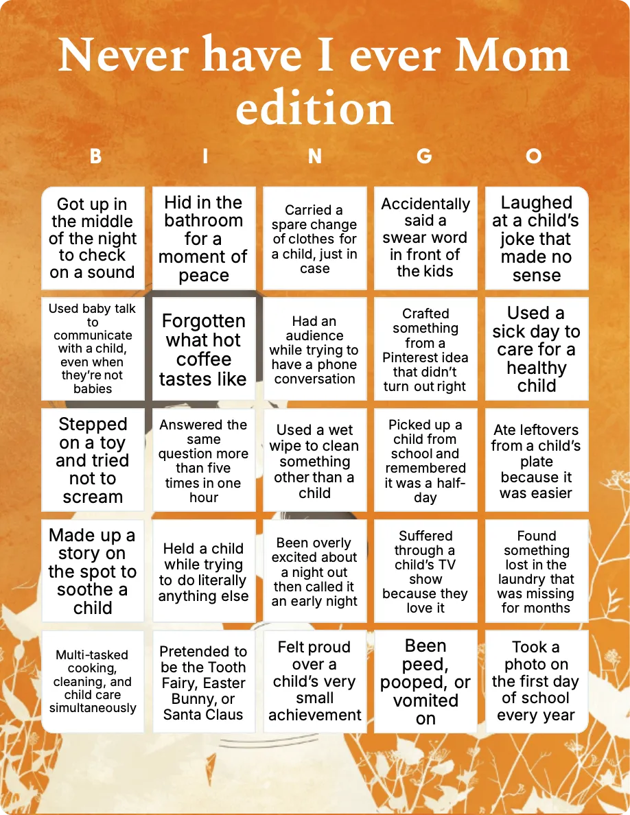 Never Have I Ever Mom Edition Bingo: Printable Customizable Bingo