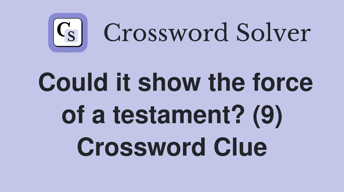 Could it show the force of a testament? (9) Crossword Clue Answers