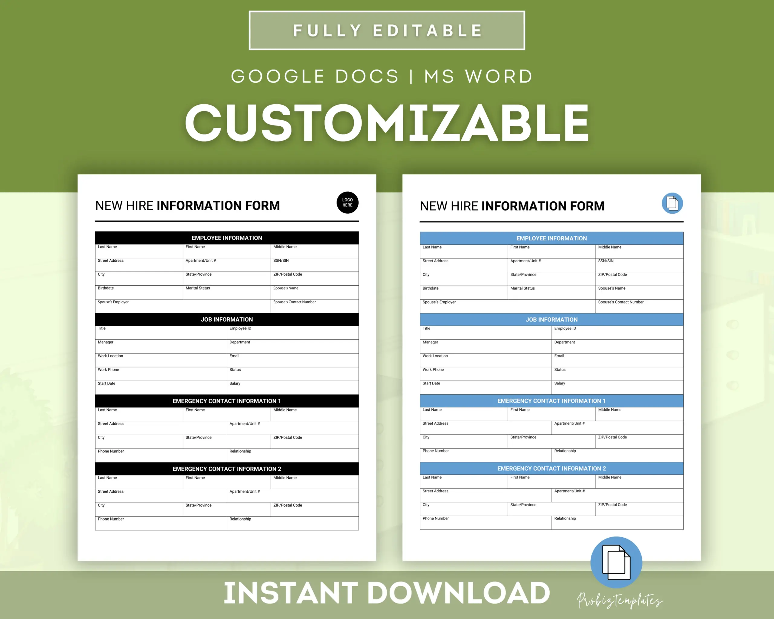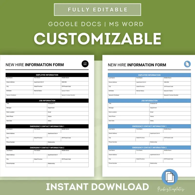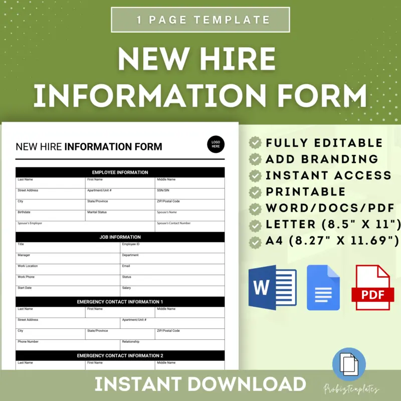 New Hire Information Form ProBizTemplates
