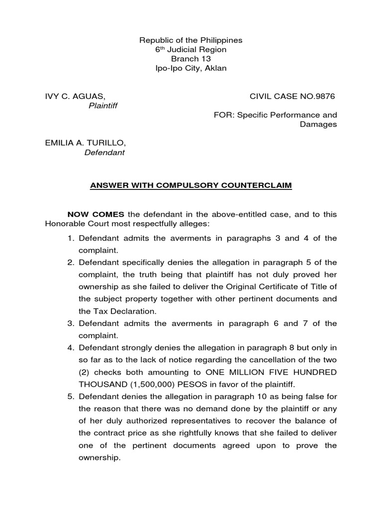 Answer with Compulsory Counterclaim Lawsuit Complaint