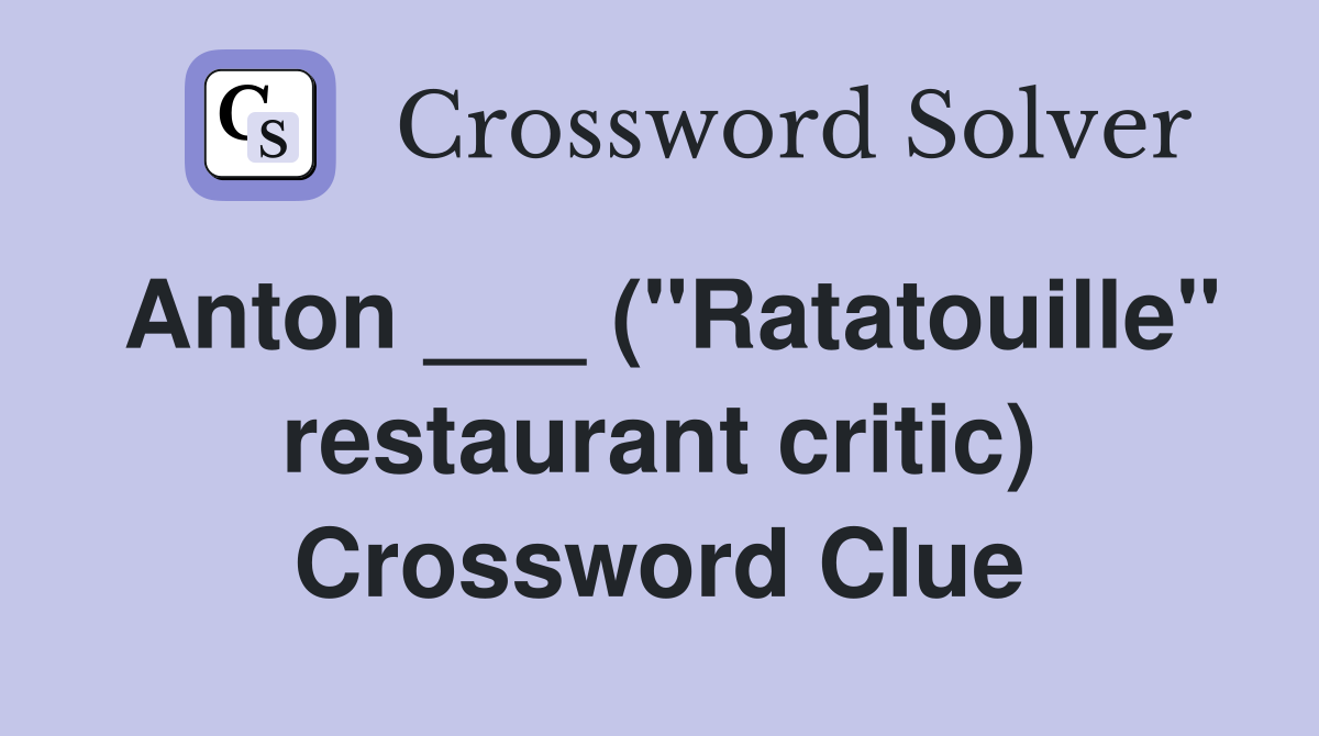 Anton ( quot Ratatouille quot restaurant critic) Crossword Clue Answers