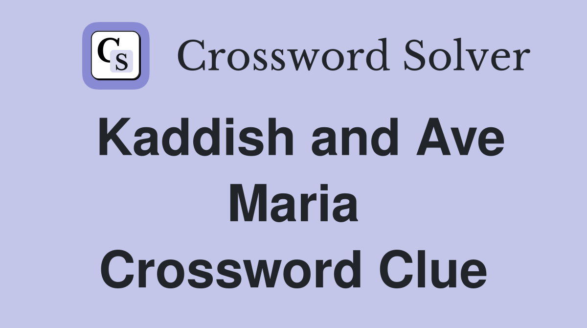 Kaddish and Ave Maria Crossword Clue Answers Crossword Solver