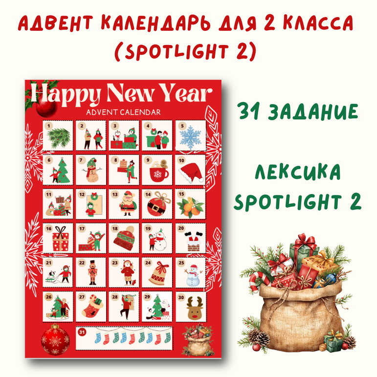 Новогодний адвент календарь для начальной школы New year advent