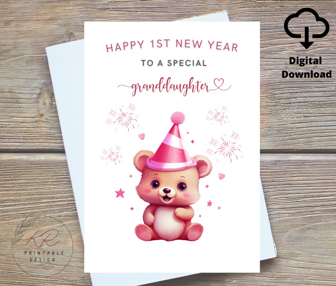 Granddaughter 1st New Year Printable Card Happy First New Year Card