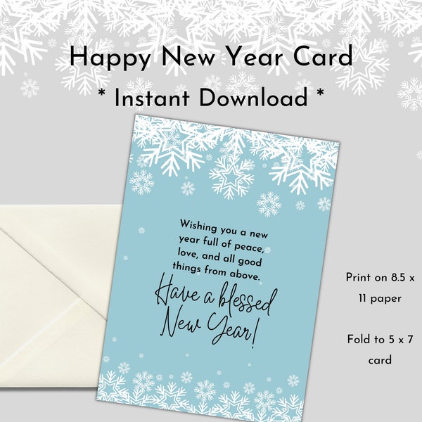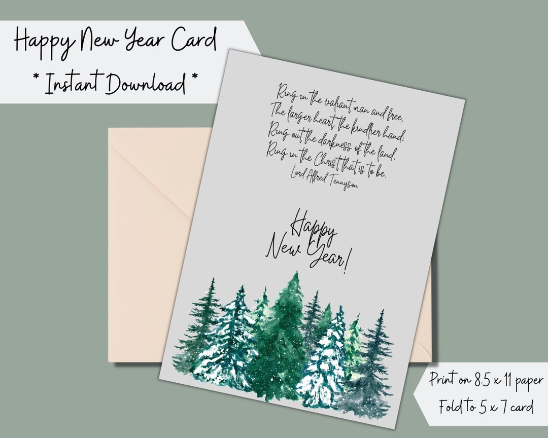 New Year Printable Card Instant Download Greeting Card Foldable Card