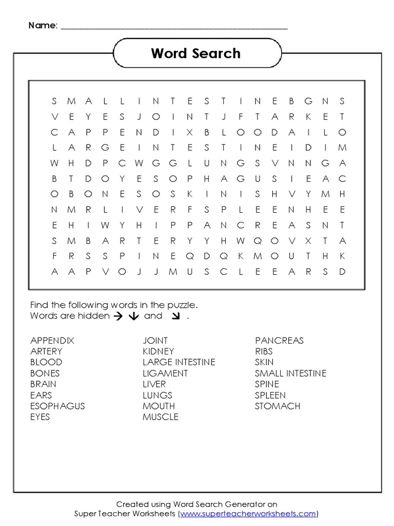 Super Teacher Worksheets Word Search PDF Stomach Esophagus