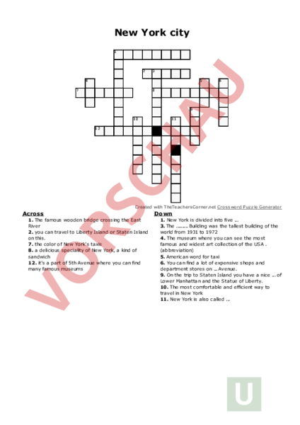New York City Crossword Puzzle ESL worksheet by Cristiane Prates