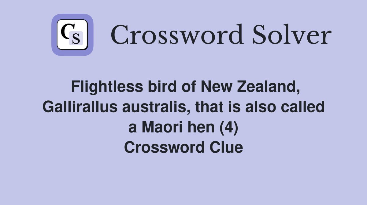 Nocturnal flightless New Zealand bird (4) Crossword Clue Answers