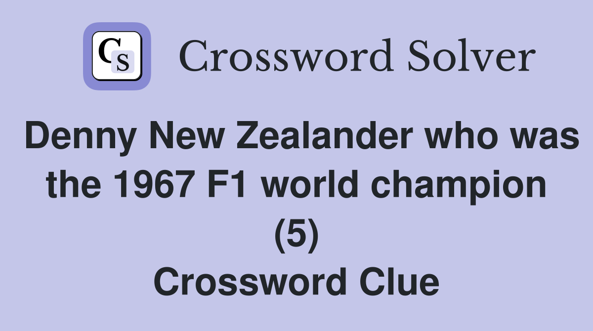 Denny New Zealander who was the 1967 F1 world champion (5) Crossword