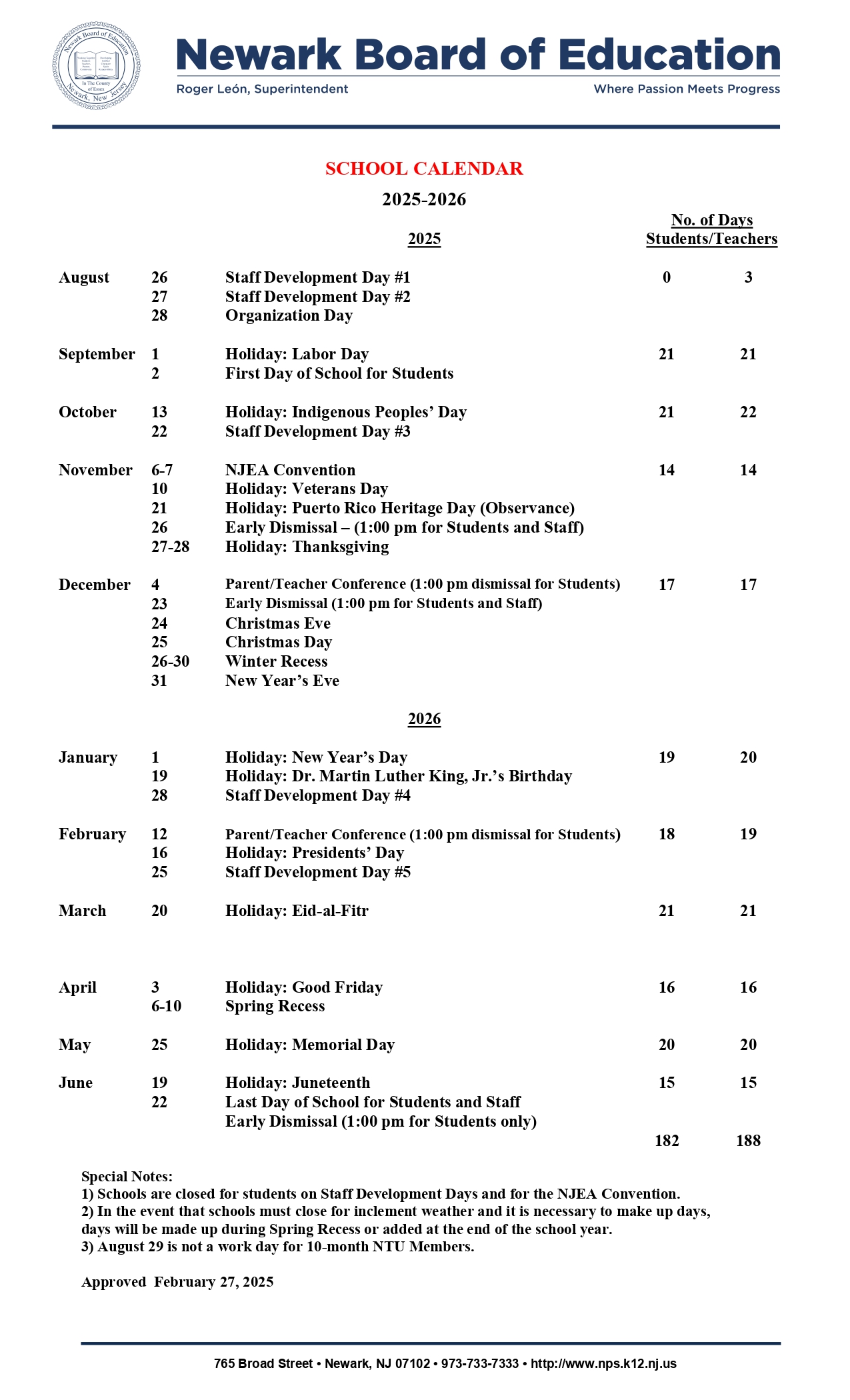 Newark Board of Education 25 26 Calendar Revised PDF EduCounty