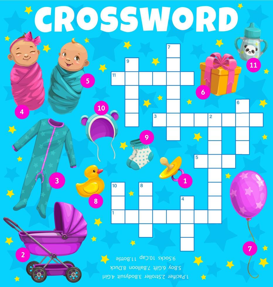 Newborns and kids toys crossword worksheet game 14472059 Vector Art at