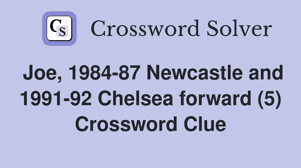 Joe 1984 87 Newcastle and 1991 92 Chelsea forward (5) Crossword Clue