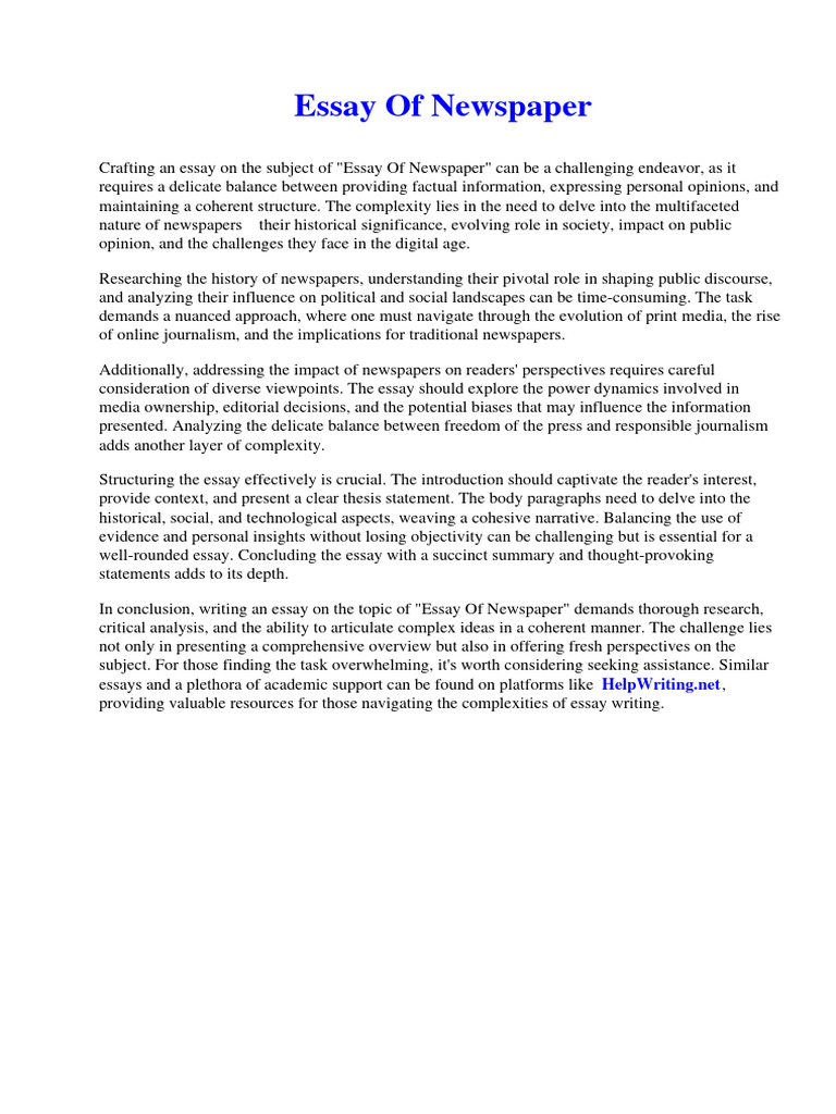 Essay of Newspaper PDF Essays Density