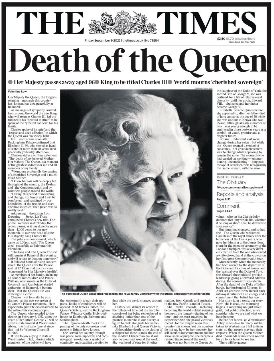 Queen Elizabeth #39 s death dominates planet #39 s front pages Toronto Sun