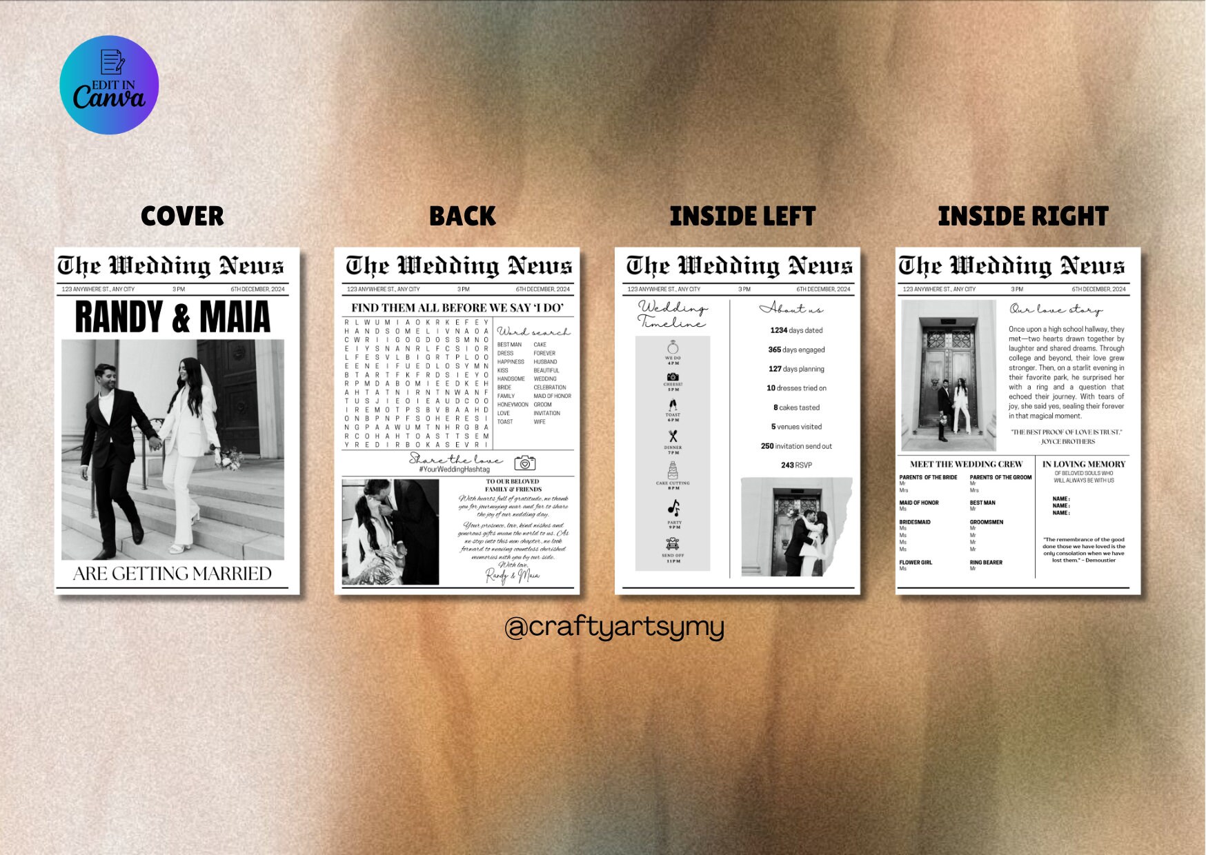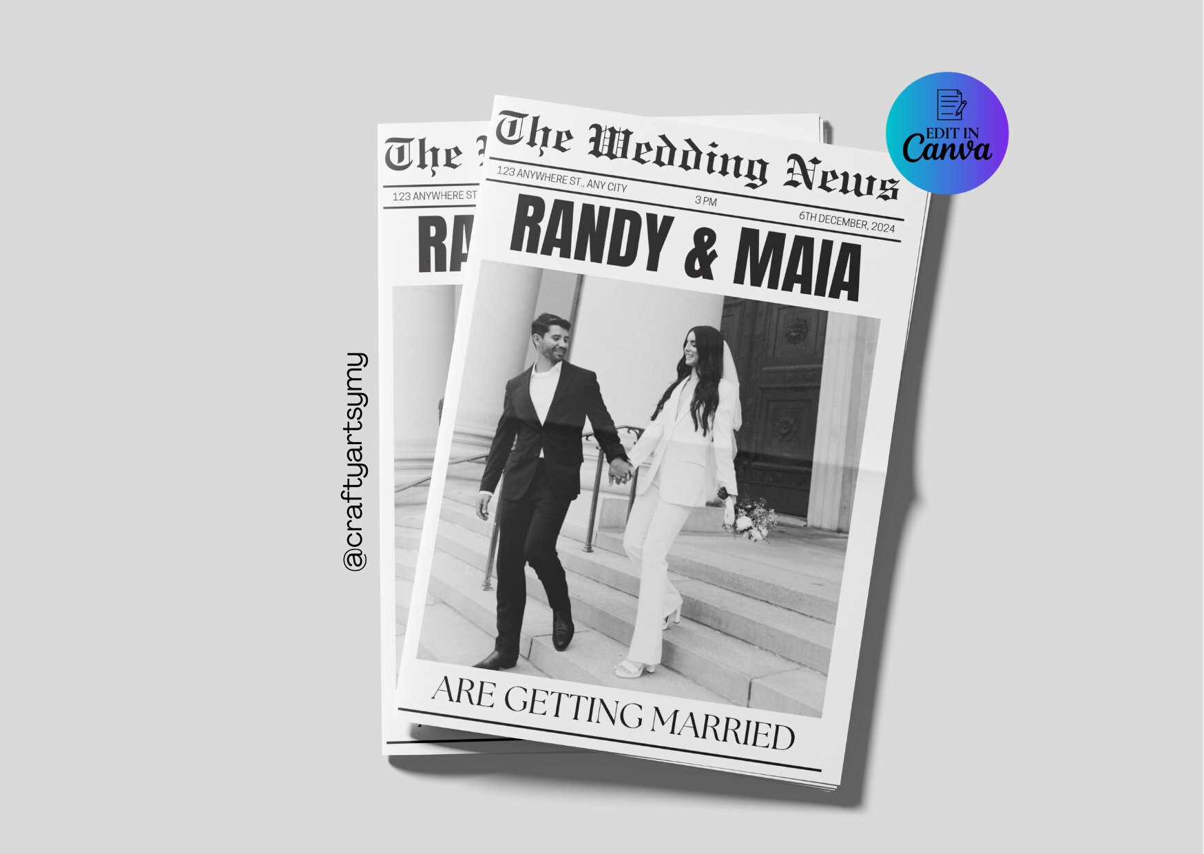 Newspaper Wedding Invitation Template: DIY Printable Canva Design (5x7