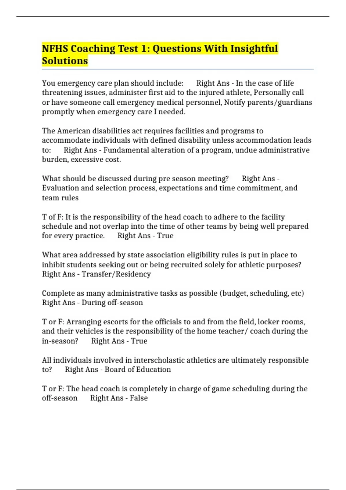 NFHS Coaching Test 1: Questions With Insightful Solutions NFHS