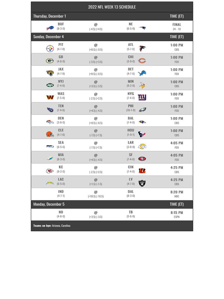 Nfl Weekly Schedule Printable