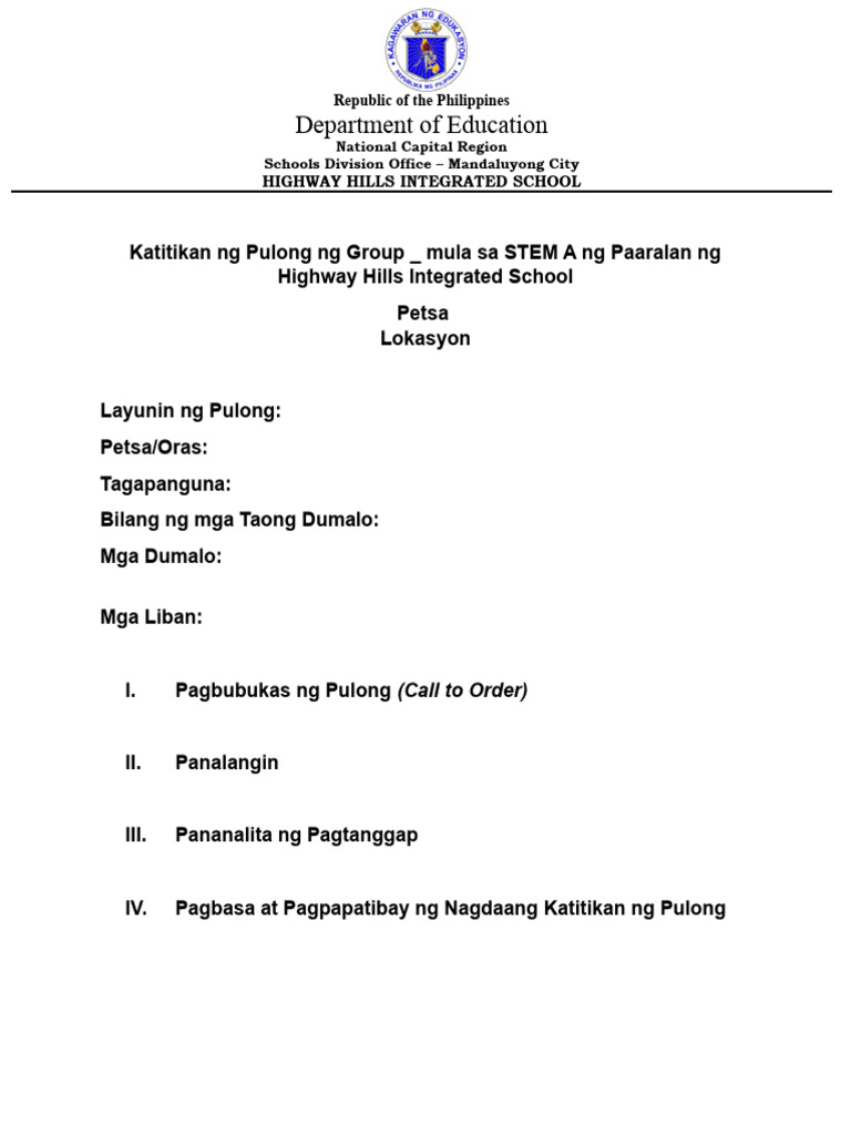 Katitikan NG Pulong Template PDF