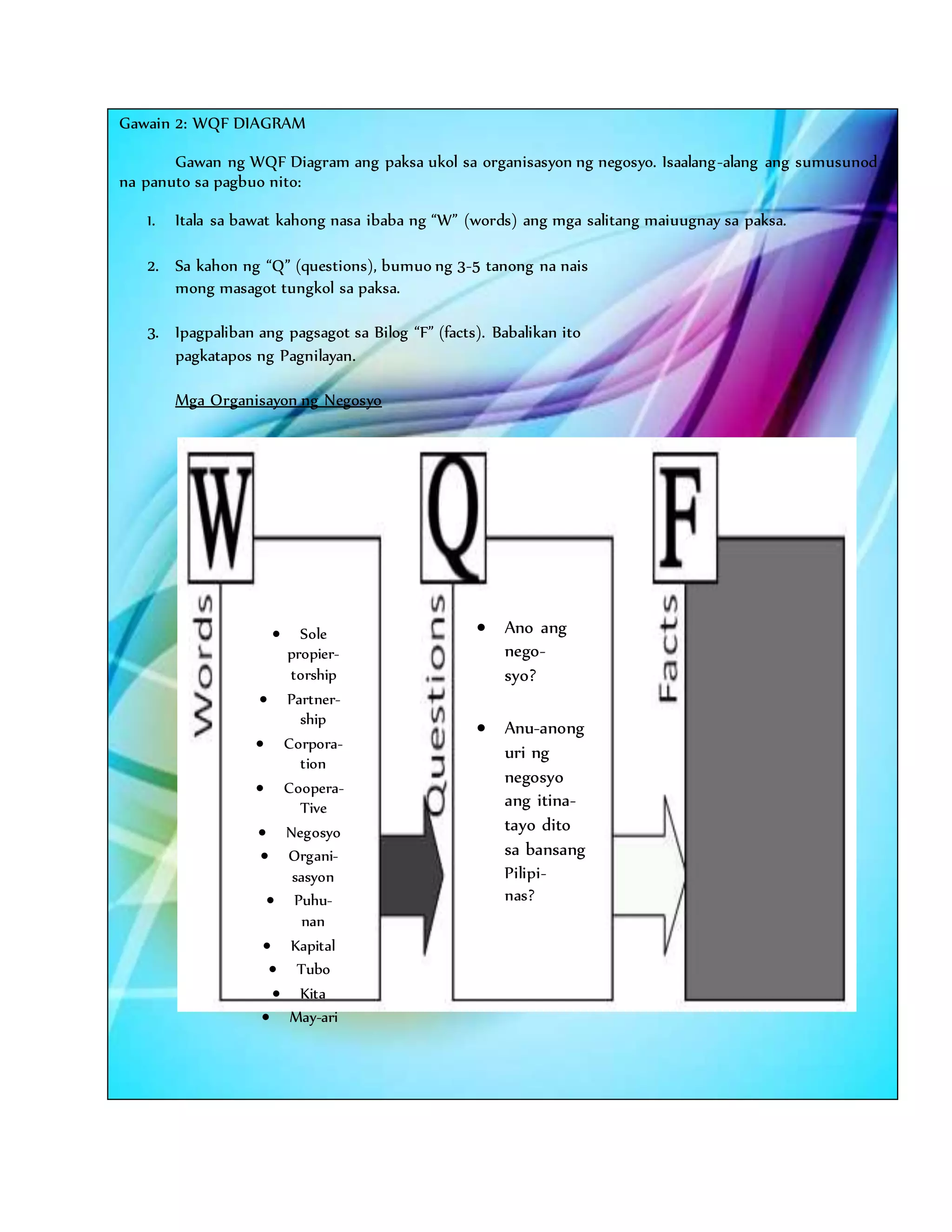 Mga Gawain sa Ekonomiks 10: Aralin 1 7 Mga Organisasyon ng Negosyo DOCX