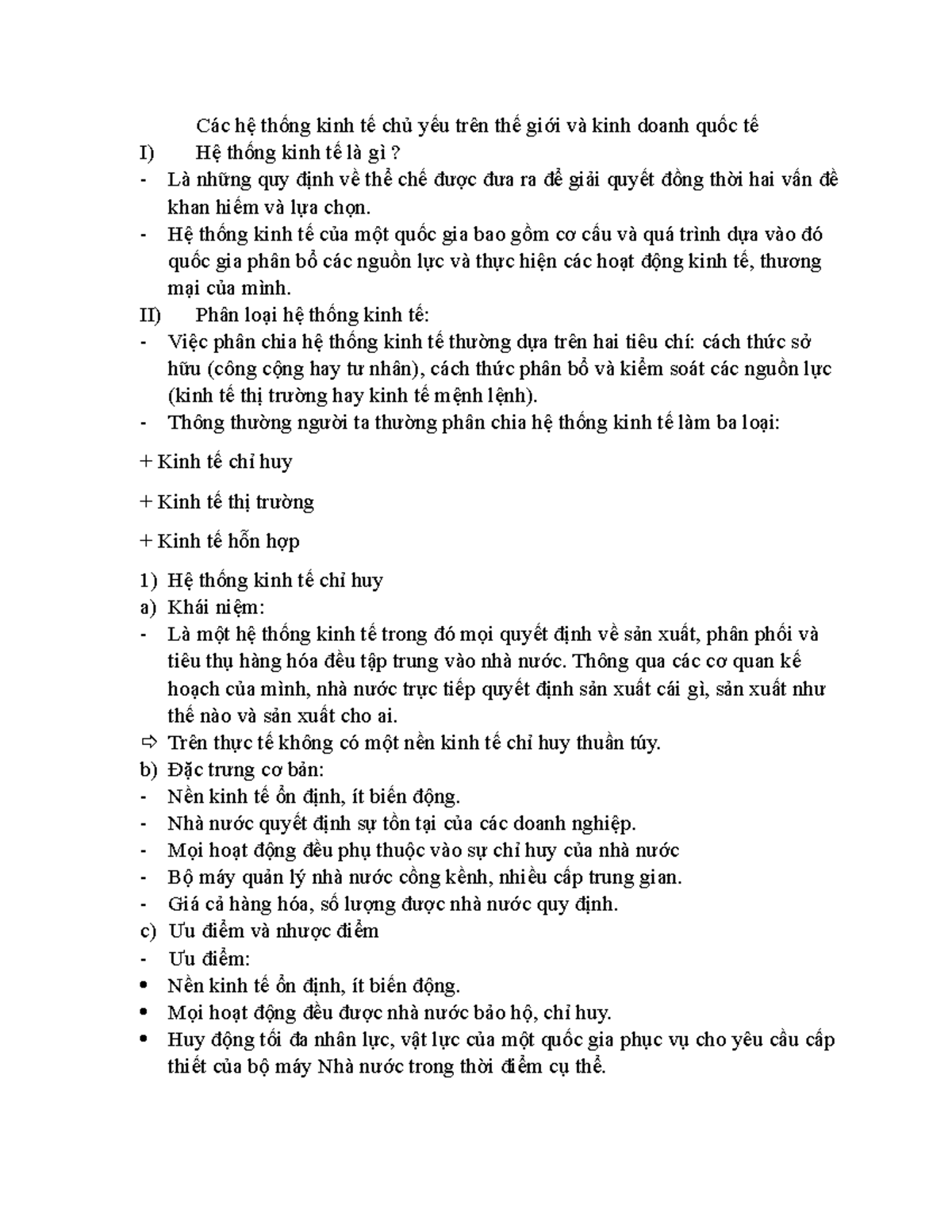 Kinh doanh quốc tế Các hệ thống kinh tế chủ yếu trên thế giới Studocu