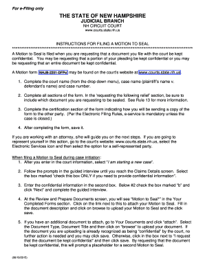 Fillable Online INSTRUCTIONS FOR FILING A MOTION TO SEAL Fax Email