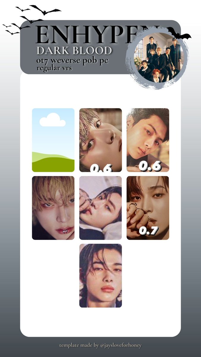 Enhypen ot7 Dark Blood photocards template
