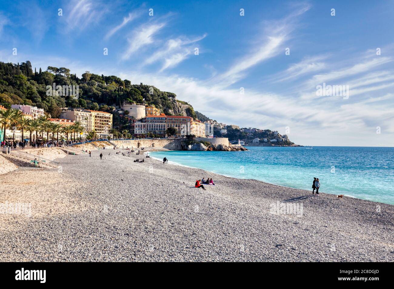 Beach and Sea in Nice Cote D`Azur French Riviera France Stock Photo