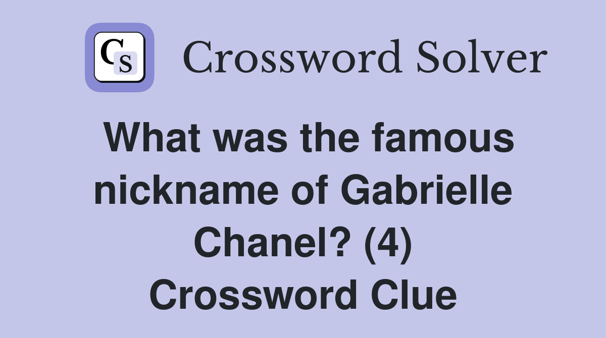 What was the famous nickname of Gabrielle Chanel? (4) Crossword Clue