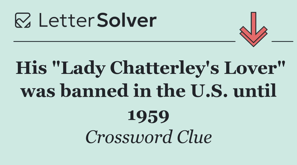 His Lady Chatterley s Lover was banned in the U S until 1959