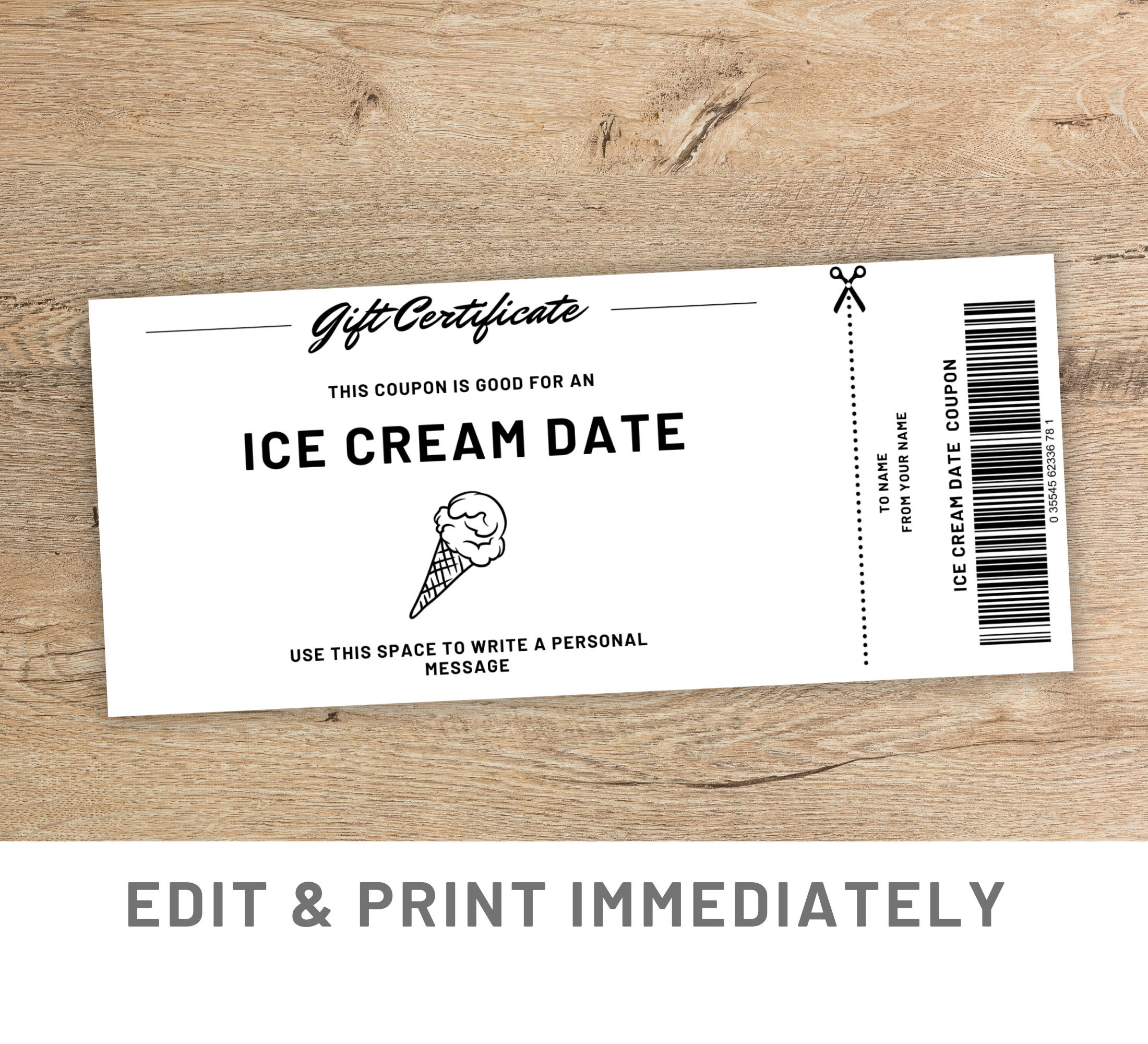 Ice Cream Date Coupon Editable Gift Coupon Template Canva Ice Cream