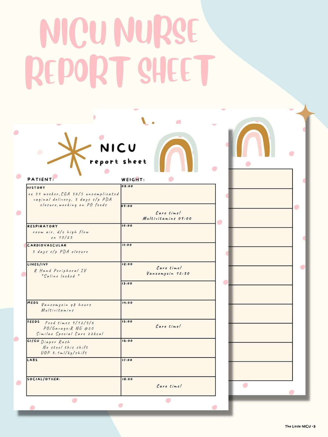 NICU Nurse Report Sheet Template Report Sheet for NICU RN Etsy