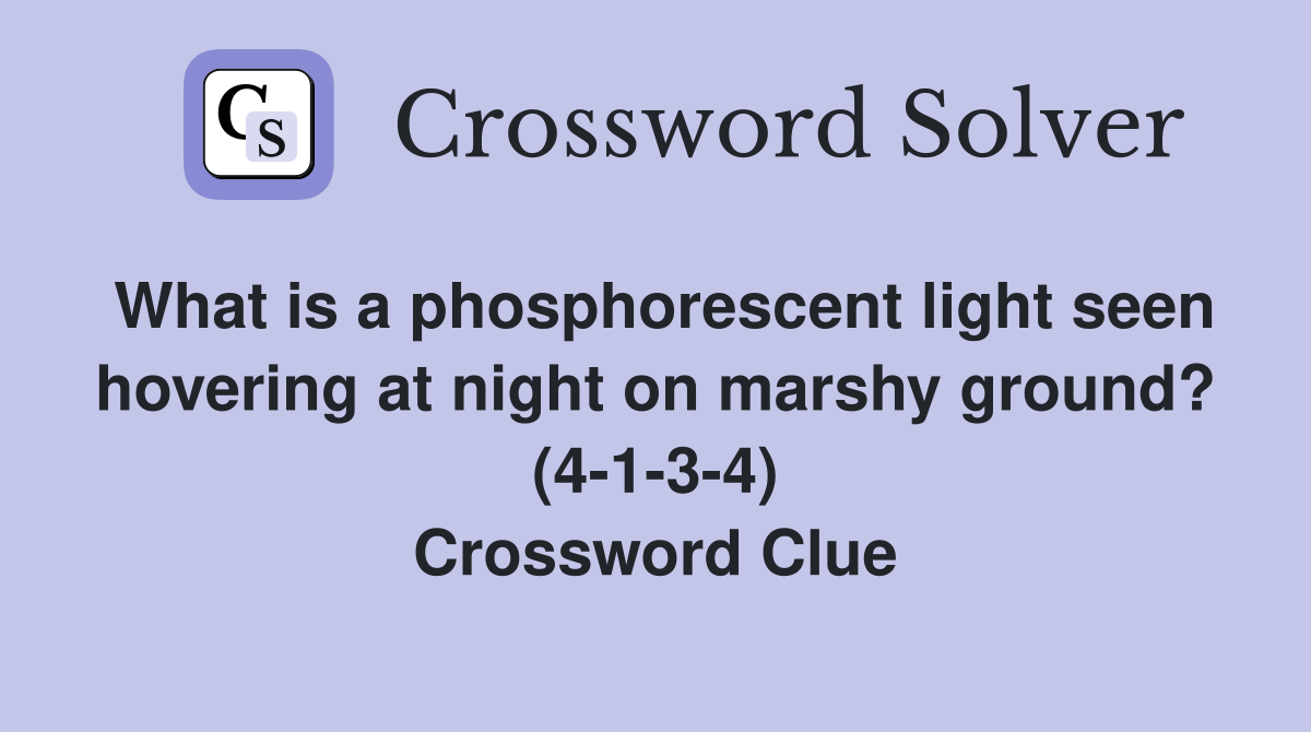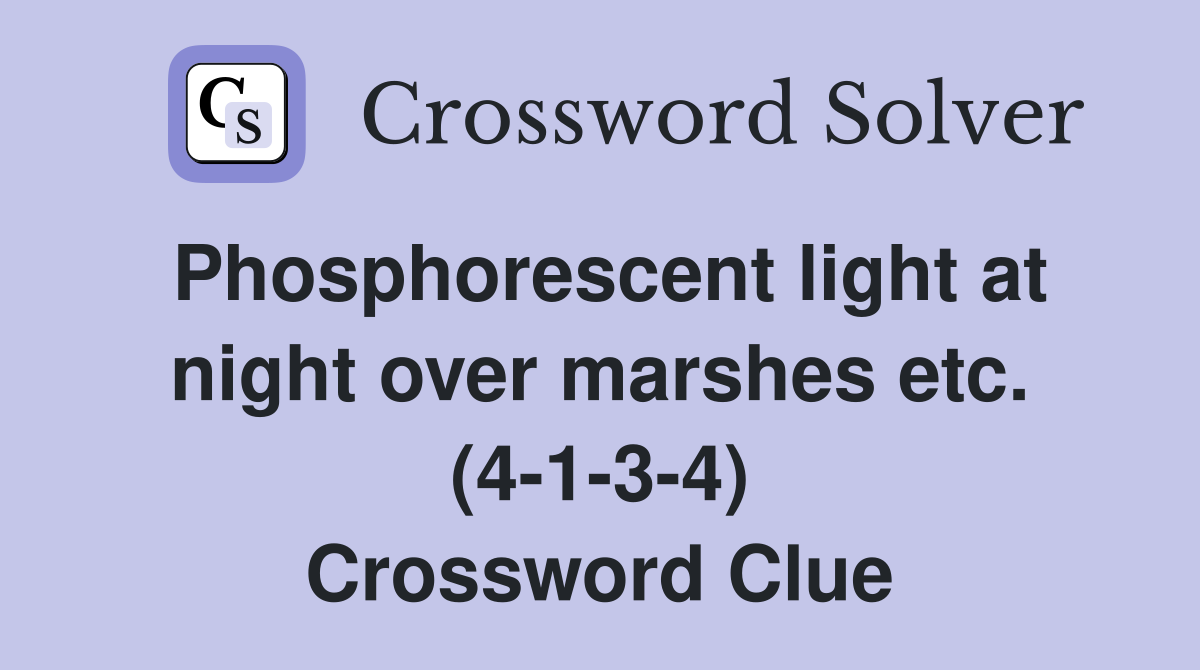 Phosphorescent light at night over marshes etc (4 1 3 4) Crossword