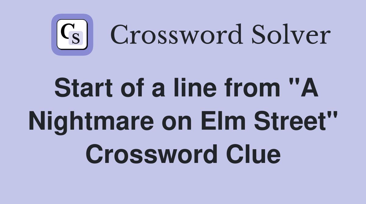 Start of a line from quot A Nightmare on Elm Street quot Crossword Clue