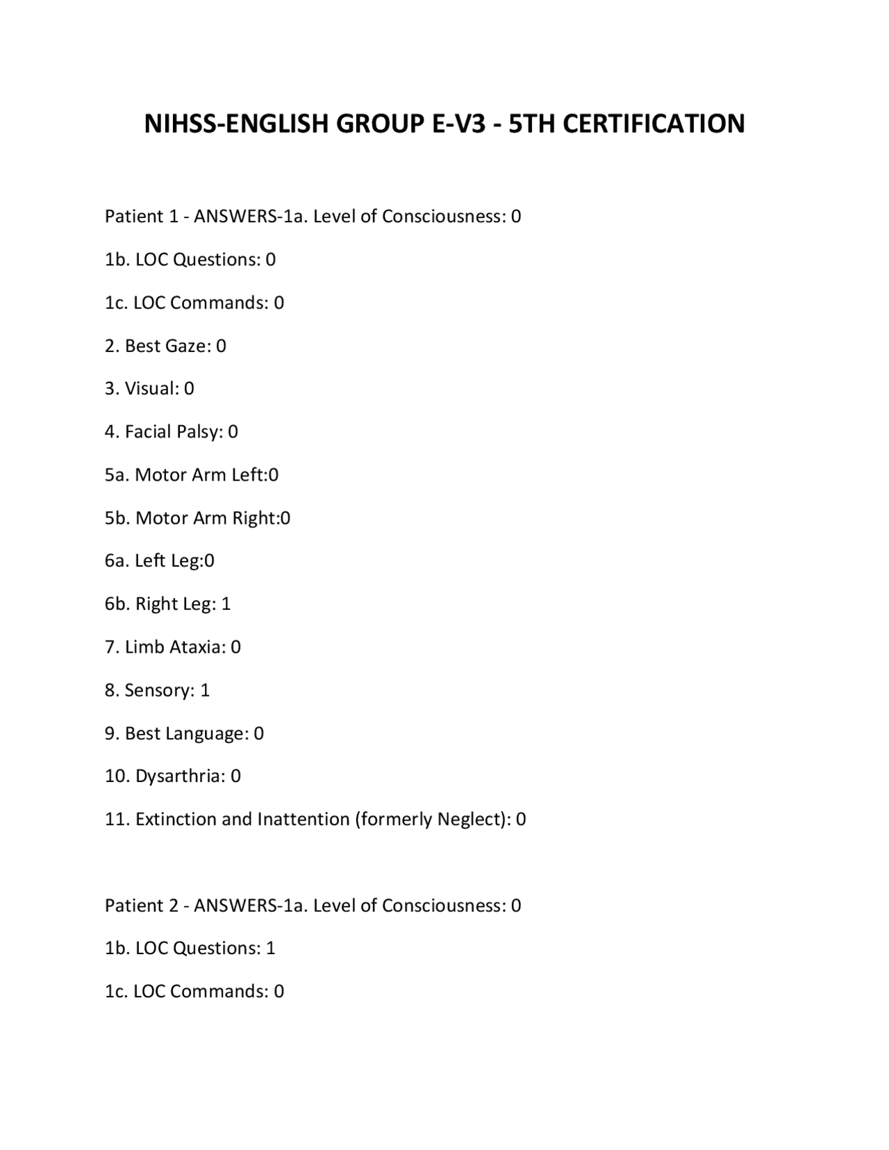 NIHSS English Group E V3 P 1 6 (5th Certification) Correctly Solved