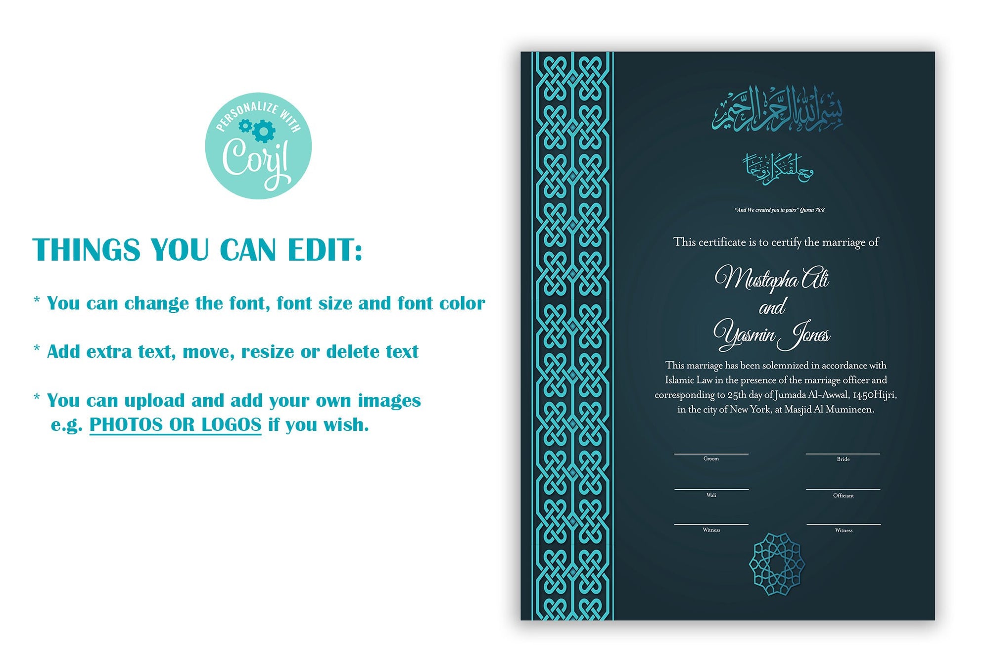 Editable Islamic Marriage Certificate Customizable Nikah Template