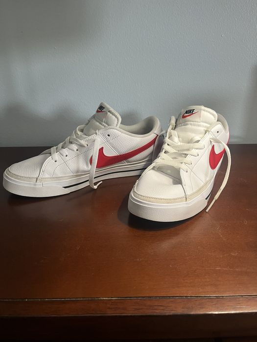 Nike Court Legacy White University Red Sneakers Size Gem