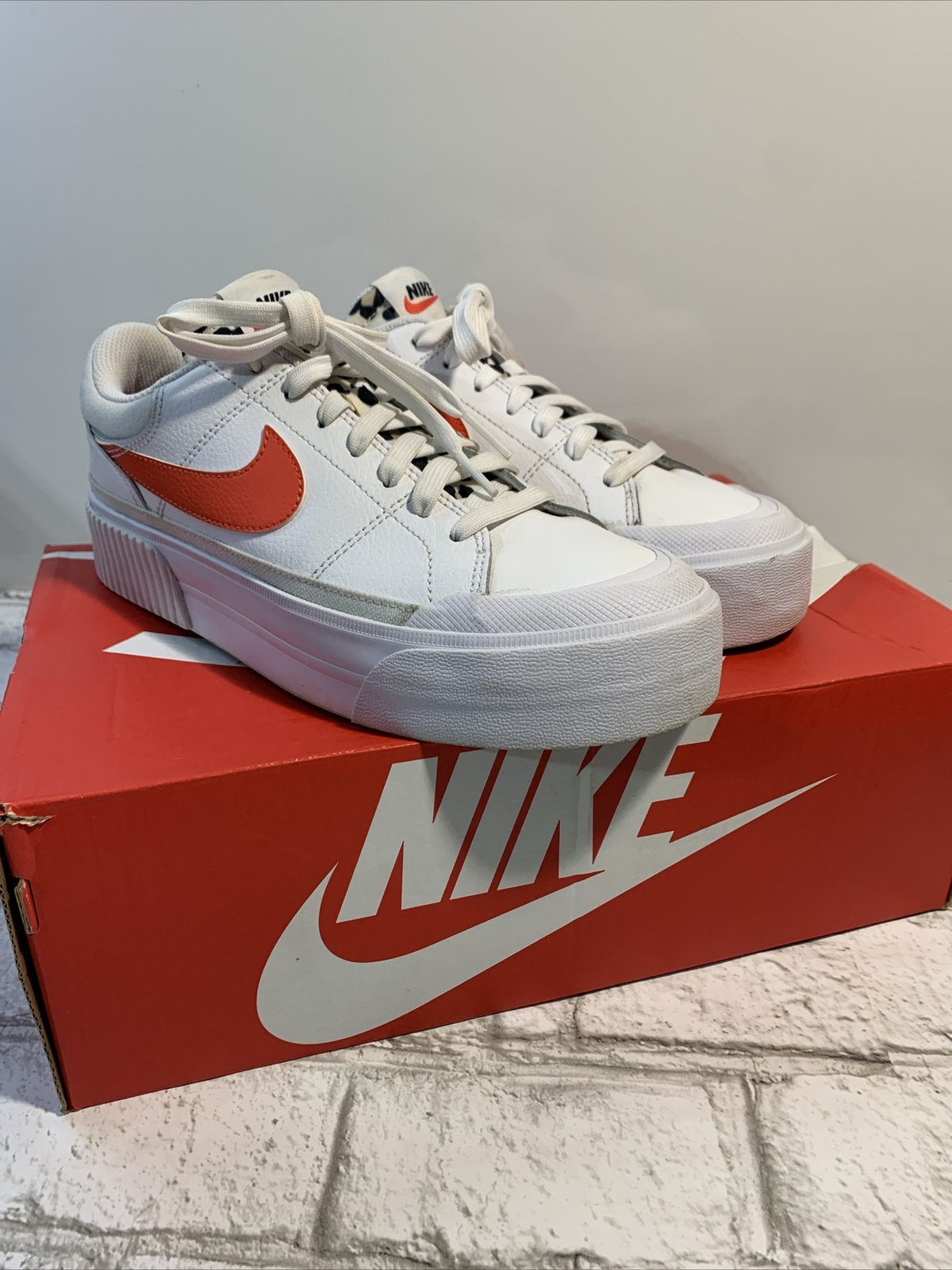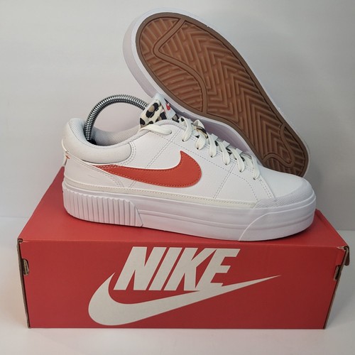 Nike Court Legacy Lift Sneakers White Leopard Print Shoes Orange Logo