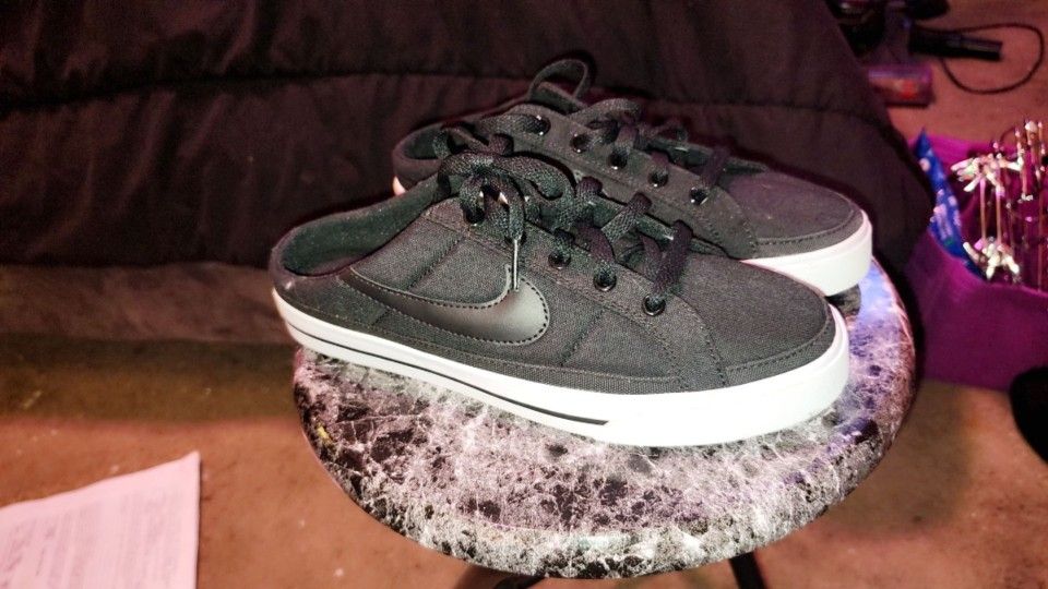 Nike Court Legacy Mules Women s Size 8 Black Canvas White Shoes DB3970