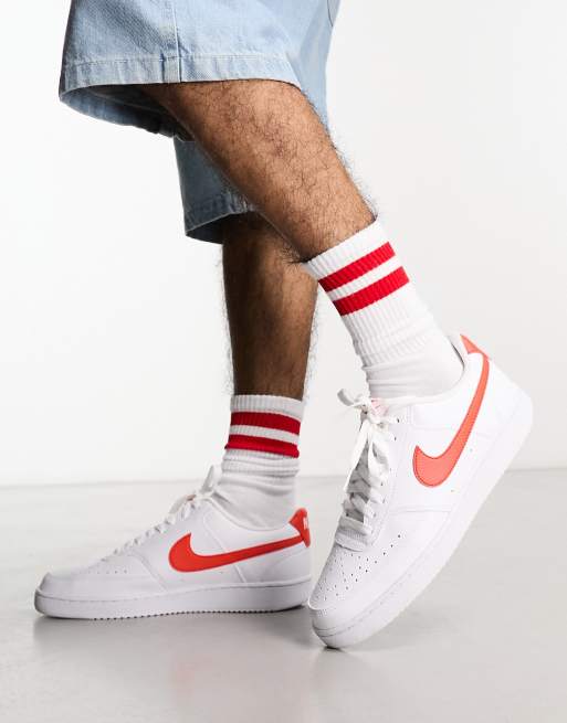 Nike Court Vision Low sneakers in white and red ASOS