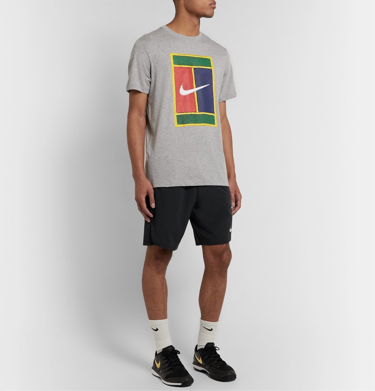 Nike Tennis Court Logo Embroidered Cotton Jersey T Shirt Gray Nike